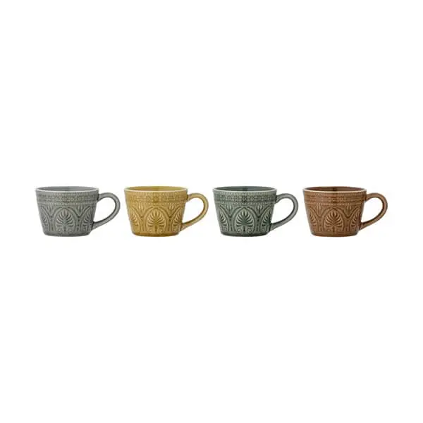 Gør hverdagen nemmere og smukkere med dette fine Rani krussæt fra Bloomingville. Sættet består af 4 krus i 4 forskellige farver. De har et sødt mønster, der vil bringe et strejf af glæde til alle borde.
