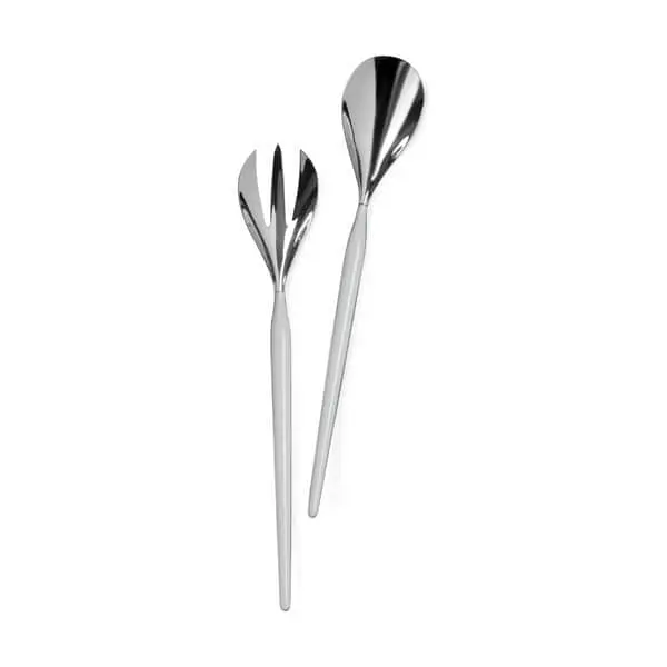 Servér salaten med dette Cathedral-salatbestik fra Cathrineholm. Bestikket har et elegant slankt design. Og er samtidig dejlig funktionelt. Bestikket fås i to farver – sort og hvid.