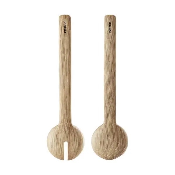 Lad dine gæster tage for sig af lækre salater med Eva Trio Legio Nova salatbestik, som er skåret i eg og derfor har et helt unikt udseende, som giver et flot og rustikt modspil til både Legio og Legio Nova stellet. De bløde former giver et behageligt greb og det enkle design er tidløst og pynter i salatskålen hele året rundt.