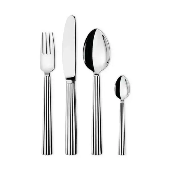 Bestikket blev skabt af den svenske Prins Sigvard Bernadotte tilbage i 1939 og er kendetegnet ved dets rustfrie blanke stål og kannelerede skafter.