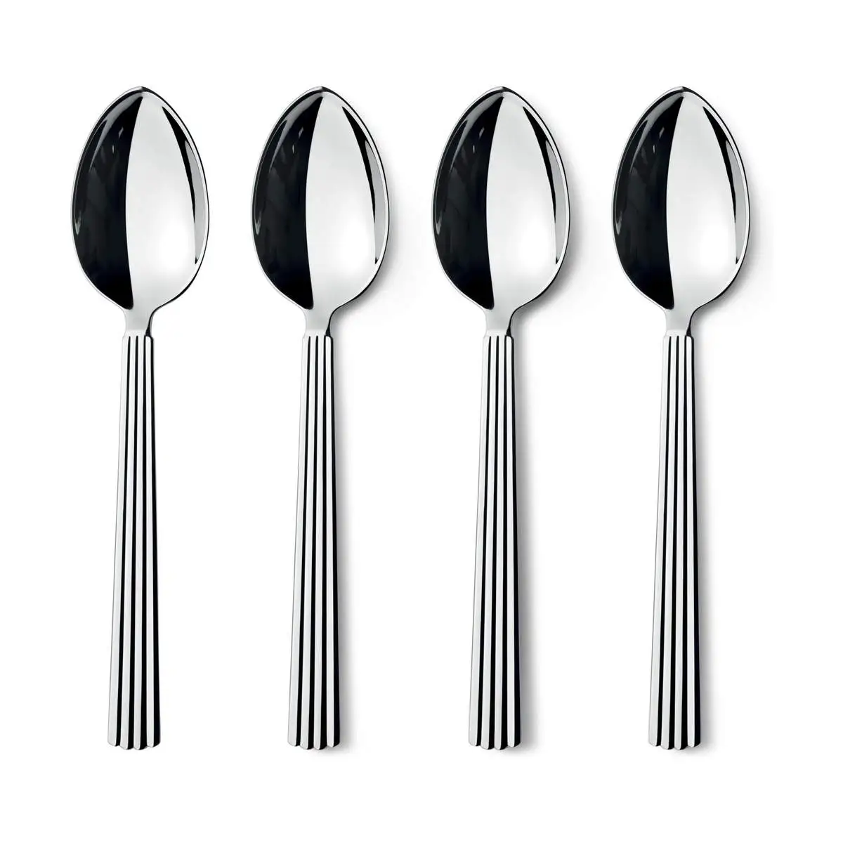 Desserten bliver en tand lækrere og mere elegant, når den spises med Georg Jensen Bernadotte Dessertskeer. Skeerne er udformet i rustfrit stål med de karakteristiske riller på skaftet, der også ses på de øvrige bestikdele fra Bernadotte-serien.