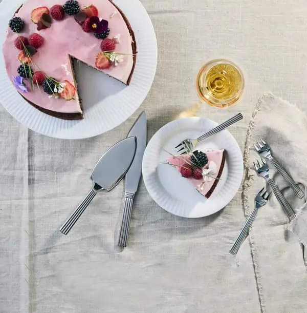 En indbydende kage skal serveres og nydes med stil. Bernadotte kagespade og kagekniv fra Georg Jensen løser den opgave til perfektion.