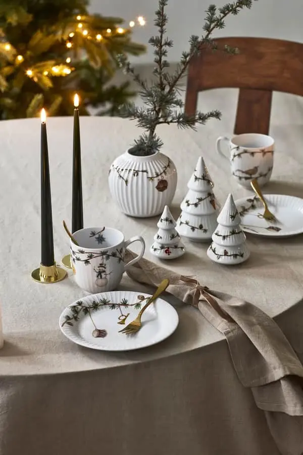 Kählers klassiske hvide Hammershøi-stel har fået en vaskeægte julemakeover. Stellet er dekoreret med nostalgiske jule-elementer som nøddeknækkere, trommer, snemænd og julehjerter, mens den grønne lærkegren skaber en kontinuitet i designet. Motiverne er tegnet med en moderne streg og en farveskala, som bringer minderne om jul i gamle dage frem.
