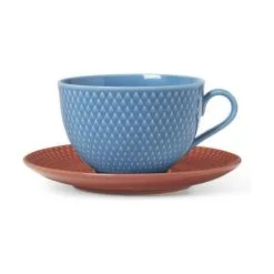 En varm kop te bliver bare bedre, når den serveres i en fin tekop med underkop som denne fra Lyngby Porcelæns Rhombe Color serie.