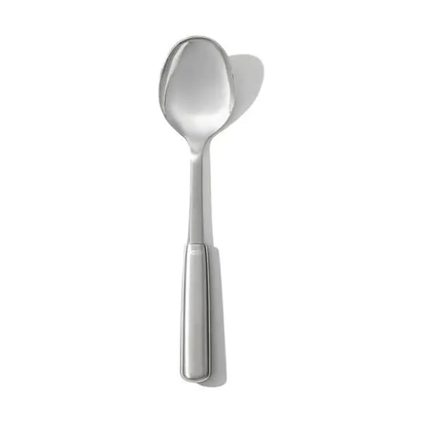 Skeen er udarbejdet i rustfrit stål, hvilket betyder, at den er ligeså holdbar, som den er klassisk i stilen. Den er skabt med komfort i tankerne med et ergonomisk designet håndtag med non-slip greb. Brug OXO skeen i køkkenet, mens du laver mad eller ved bordet til servering.