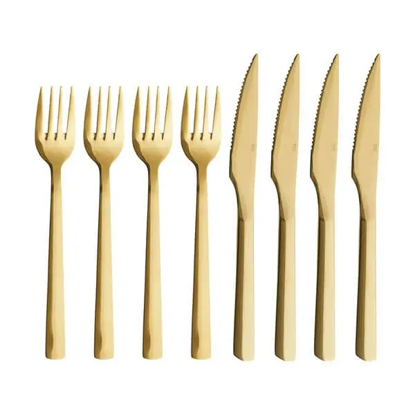 Få den ultimative steak-oplevelse med det lækre steaksæt bestående af 4 gafler og 4 steakknive i et råt og enkelt design, passer dette sæt perfekt til den nordiske livsstil.