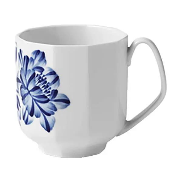 Kruset med det smukke Kamelia-motiv hviler på en lav søjlefod, som fremhæver det elegante design. I forlængelse af krusets kantede form, er håndtaget på samme måde kantet og let. I serien Blomst fra Royal Copenhagen kan du få krus med forskellige motiver, som sammen skaber et nydeligt kaffebord.