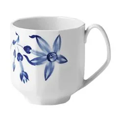 Kruset med det smukke Pinselilje-motiv hviler på en lav søjlefod, som fremhæver det elegante design. I forlængelse af krusets kantede form, er håndtaget på samme måde kantet og let. I serien Blomst fra Royal Copenhagen kan du få krus med forskellige motiver, som sammen skaber et nydeligt kaffebord.