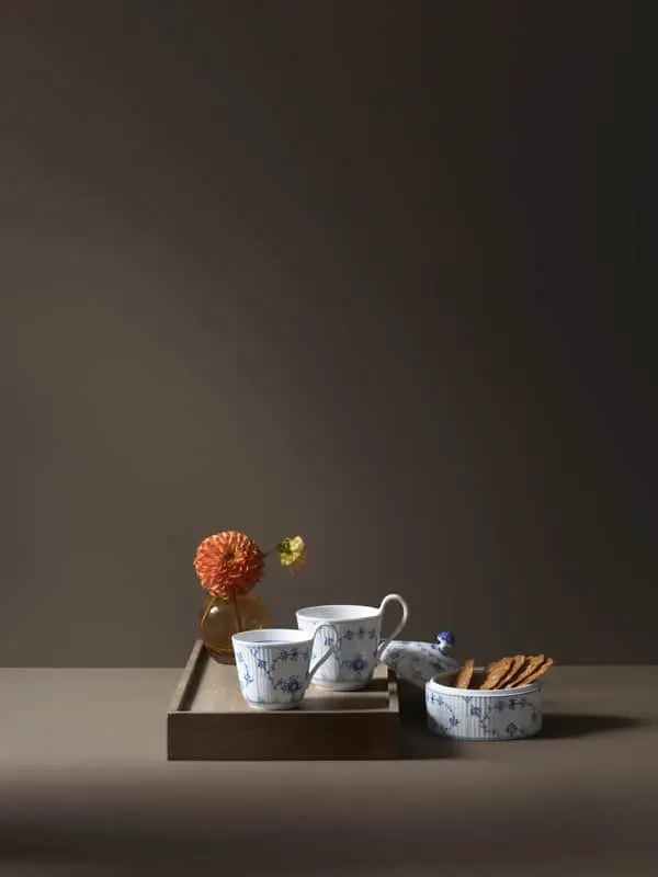 Musselmalet Riflet er et tidløst stel. Det kan bruges hver dag som basis for en unik kollektion af Royal Copenhagens porcelæn, hvor det traditionelle mikses med det moderne. En evig klassiker.
