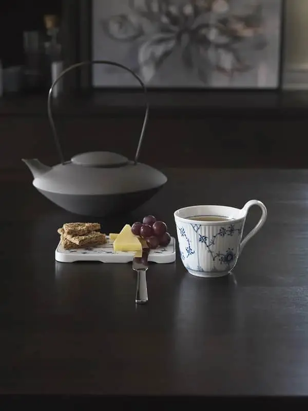 Tip: Du kan sagtens kombinere stellet med andre serier fra Royal Copenhagen. F.eks går stellet rigtig godt sammen med det Hvid Riflet stel, hvor det vil få lov til at stjæle opmærksomheden med sit yndige blå mønster.