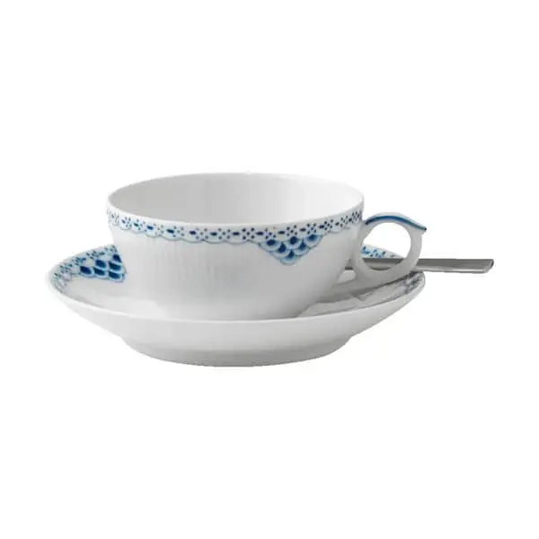 Prinsessestellet er feminint og håndmalet. Kendetegnet er en forfinet blå kniplingebort, som du sikkert genkender fra Royal Copenhagens klassiske musselmalede porcelæn. Det håndmalede Prinsessestel fra Royal Copenhagen så oprindeligt dagens lys som et te-stel, men siden 1978 har det været et fuldt spisestel, der kan give din servering af hverdagens hofretter et elegant løft.