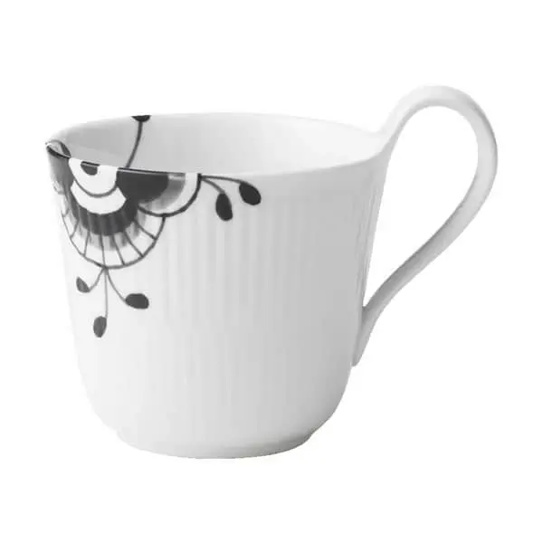 Nyd dagens første kop te i en Royal Copenhagen Sort Mega Riflet kop. Højhankskoppen er et flot bevis på, at selv de bedste traditioner kan holde til nytænkning. Det ikoniske sorte penselstrøg skaber kontrast på den hvide baggrund og giver porcelænet et enkelt og elegant udtryk.