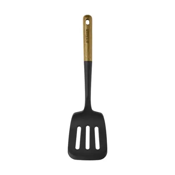 Uanset om du skal flippe kødet til burgeren eller vende de lækre pandekager, er paletten fra Staub det rette valg. Det flade design glider nemlig let og elegant under maden, så du kan vende det. Og takket være den afhakket kant, kan du bruge paletten til at skære lasagnen ud i stykker – endda også kagen til aftenkaffen.